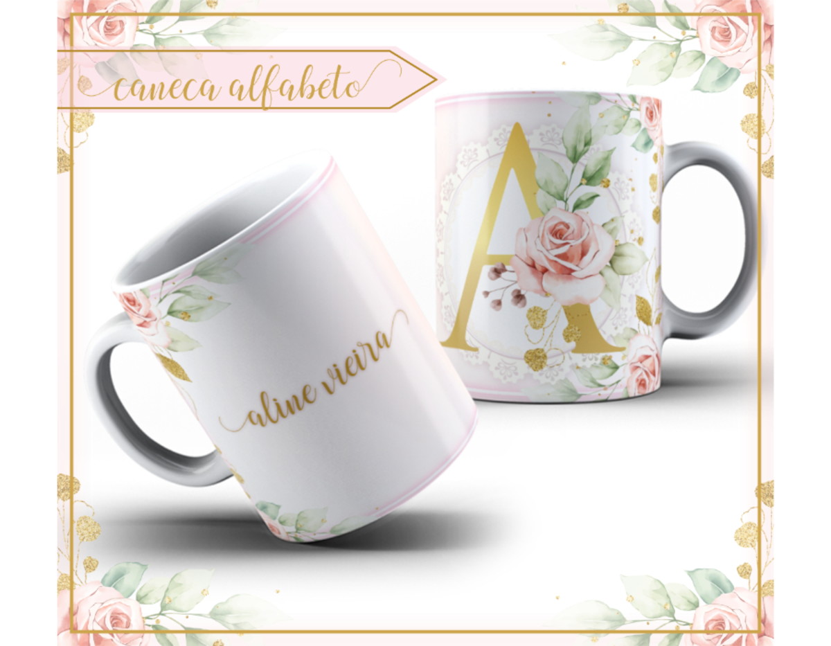 Canecas personalizadas com letra e nome para várias ocasiões.