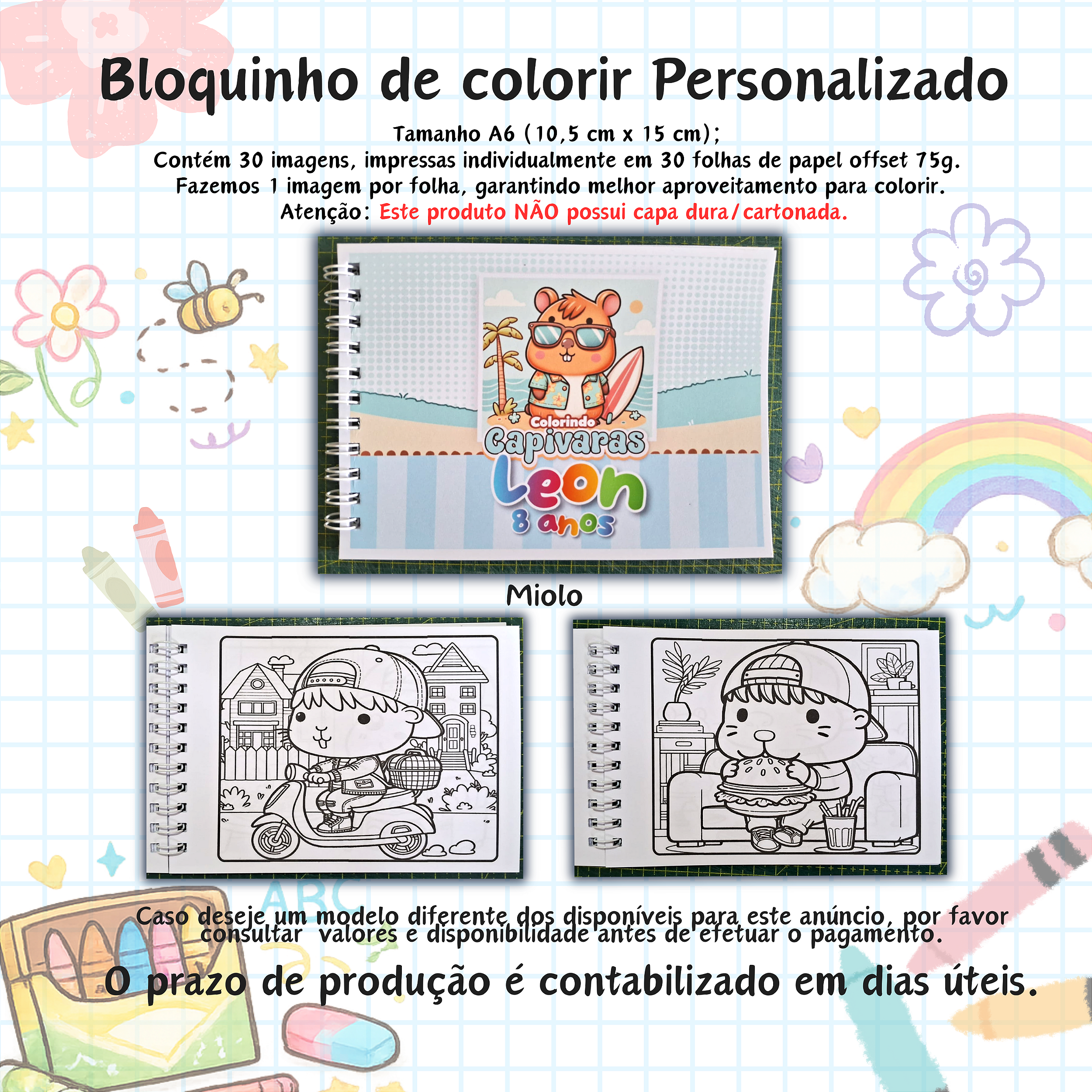 Kit 24 Bloquinhos de Colorir no Tema Capivara Menino